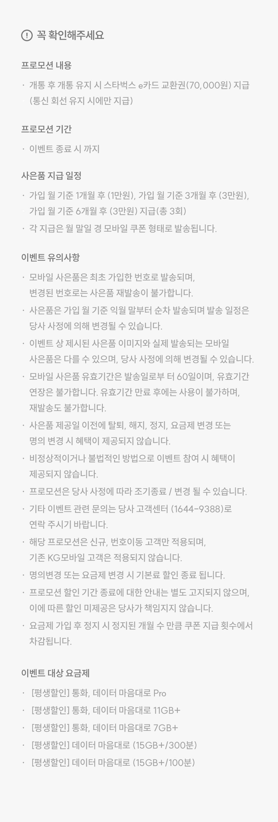 [KG모바일] 스타벅스 e카드 교환권 7만원